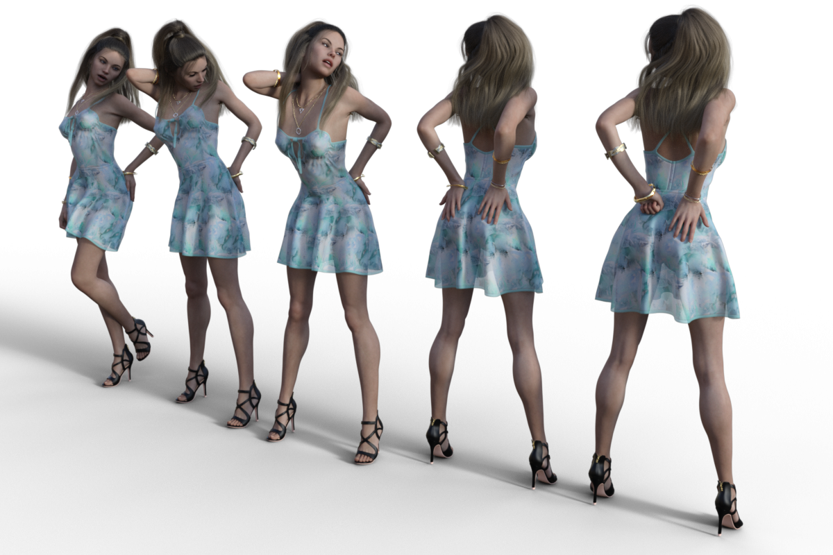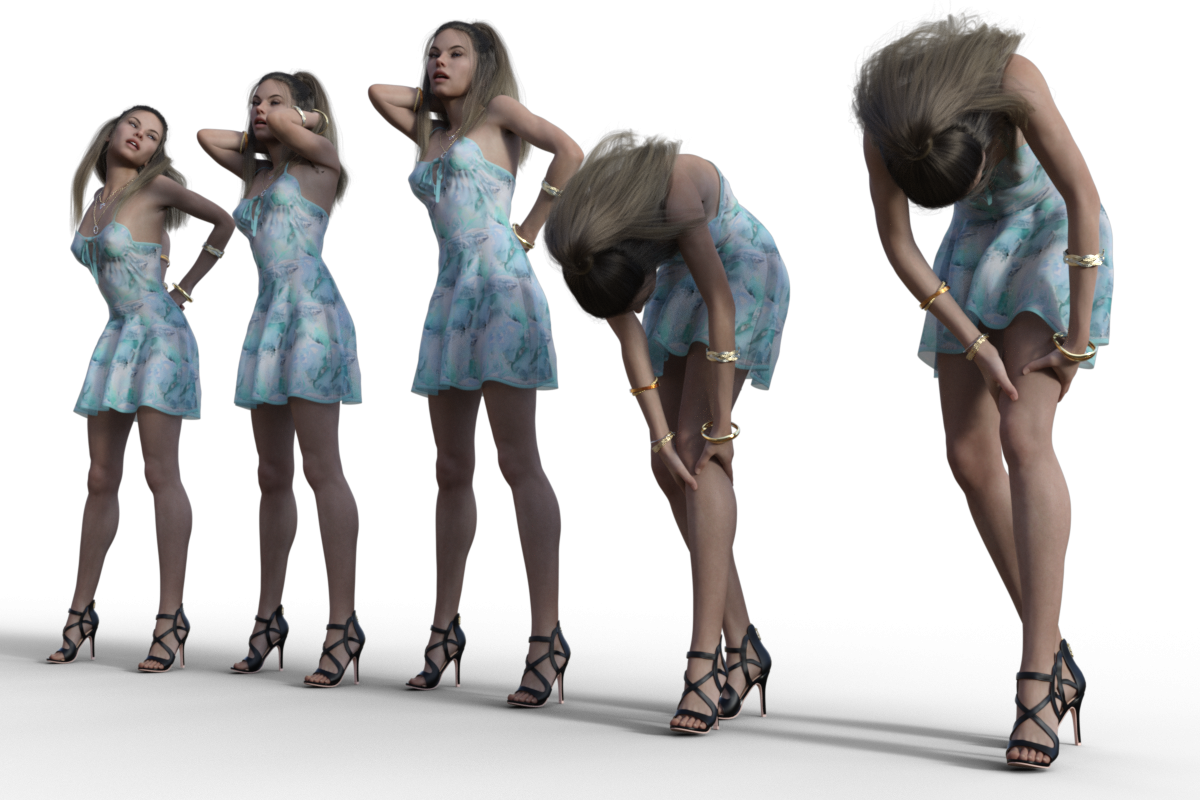 As a result of @Mouser suggesting that backache poses should be available, I thought it might be interesting to extend the idea a little to poses caused by wearing high heels. There are 20 poses in all, this is 01 to 05, and when I have packaged 06 to 10, I'll get them uploaded.