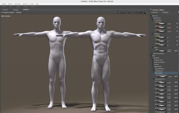 The Muscularity Morphs for Genesis 2 by SimonWM, now available in the store, do not work at all in Poser. They are installed in the proper place, and they appear in the parameter dials, but they do absolutely nothing but take up space.