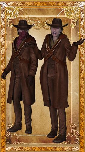 Excellent! Thank you! I sometimes feel like we need a 'does this auto-fit OK to the other gender' thread around here. :) From the looks of it, I could get this for use with a female outlaw character. Could maybe put some darker clothing shaders on the hat and coat for a more villainous look.