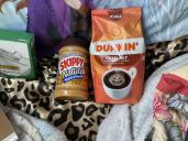 I opened the presents from mum.  Got envelopes but no Stamps!  But I did get coffee and peanut butter.