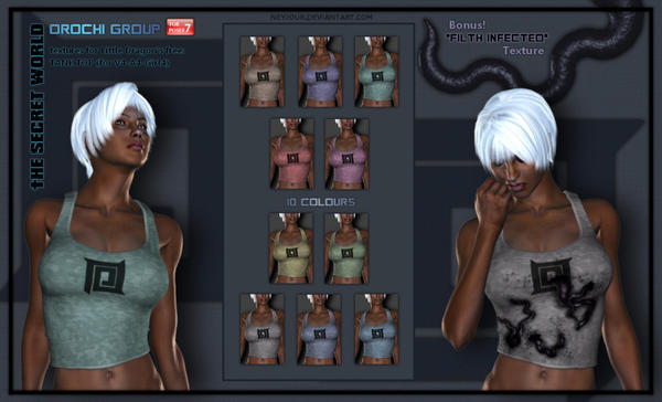 "The Secret World" Orochi Group textures for Little Dragon's free Tank Top (for V4-A4-Girl4)