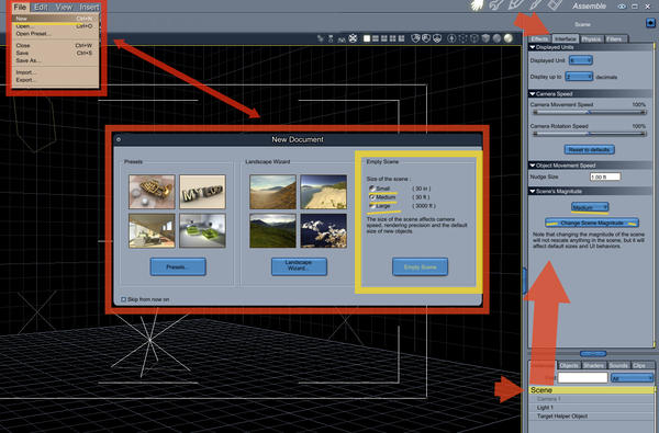 Using the Scene's Interface tab, you may also change the magnitude of the scene as well as other aspects of this behavior, though I have always preferred to begin with a new scene of the appropriate magnitude, rather than to change in the middle of a project - even if that meant that I had to start over. But that's just me.