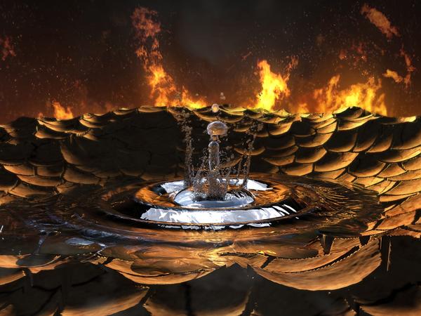 This was made in Bryce 7.1 Pro, using ELEMENTS from "High Resolution Terrains Set 4", "Bryce Pro Volumetric Fireballs", and "Emotiguy" for DAZ Studio, (um, I'm still using DAZ Studio version 2.3 for no good reason).