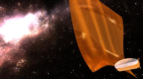 It might also have come from a film or comic. I now remember that they would extend from the front like a big umbrella and each panel could be moved independently to catch more or less of the solar wind. Jules Verne also wrote about them.