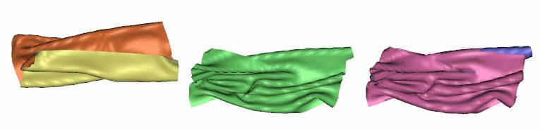 Frame 30: Static (left) shows slight differences. Dynamic (right) is a clone of the original (center) but with an edge and second surface. (Excuse the color change from previous set, redid and got the colors on the dynamic version reversed.)