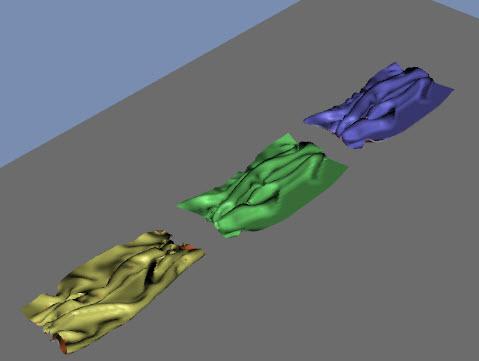 Although you add a dForce modifier to all three, you cannot independently set the parameters on the static thickened copy as the surface pane does not show the dForce parameters. You can modify the dForce parameters of the original to change it and the dynamic thickened object draping but the static version remains locked to the default dForce parameters. Save and reopen the file, add the dForce modifier to the static object again, and the parameters will now appear and you can vary its dForce properties.