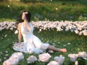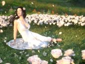 that's lovely , great pose, really impressed you made the dress and yes, the background is humming ! looking forward to the petals and other thins - some blowing in the breeze is a terrific idea