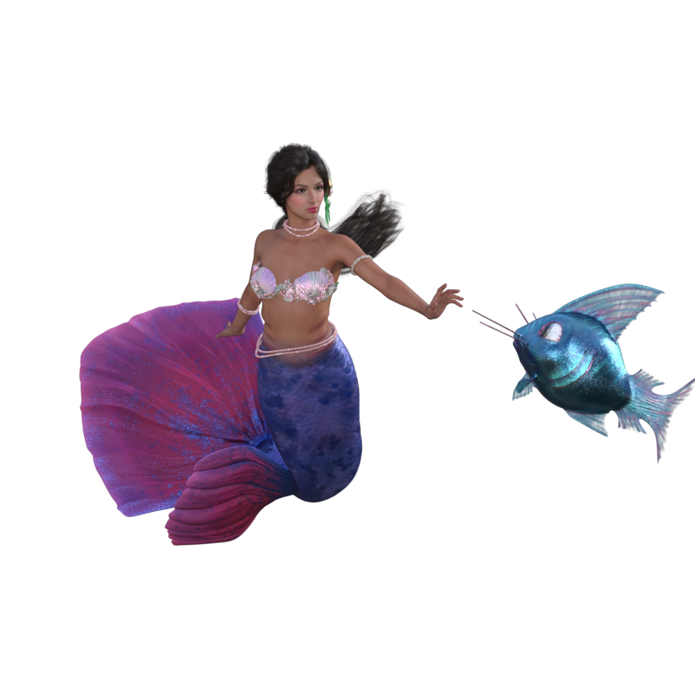 My first quick render.  First one is out of the box, no lighting. Only edit is I added a shader to the bikini top to make it a bit pinker.  Second one uses luminosity black lights and photoshop to add water. I love the little fish character too and can't wait to play with the rest of the items in the bundles.
