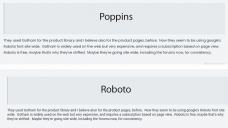 To my eye, Poppins is too wide for body text - It's wider than Arial while Roboto is narrower. The line spacing on Poppins is too great here. Increased line spacing enhances legibility, but too much and one needs an enormous space to differentiate paragraphs. That's where we're at with Poppins. I haven't looked on my phone, but this font might be painful there. Comparisons to Comic Sans seem overstated.