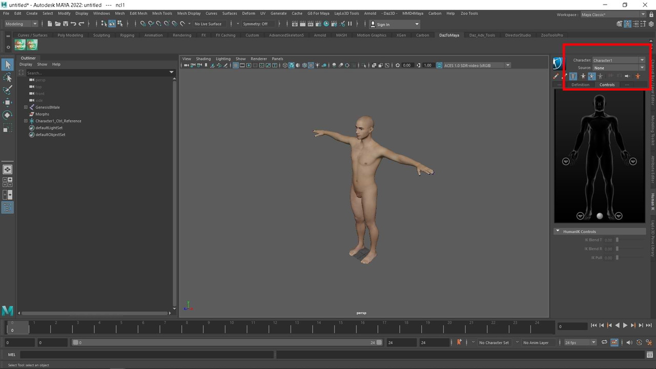 The "DazToMaya" plugin is quite clunky. Use HIK, and rename the bones to the Human IK model: This may work if you exit Daz Studio, but I prefer MotionBuilder, before "swallowing porridge ..." I think you understand me. I'd rather do my Skeleton Definition in MOBU than through this ... thing ... in Maya.
