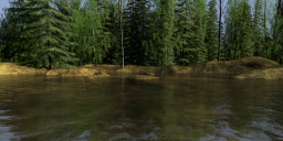 Works quite well and renders very quickly. At these settings even 10-20 detailed trees would take hours to render. This took 4 minutes with the bulk of the time spent rendering the water.