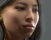 Excellent! I love how the light is captured in different parts of the eyes, it suggests a little sadness in her contemplation.