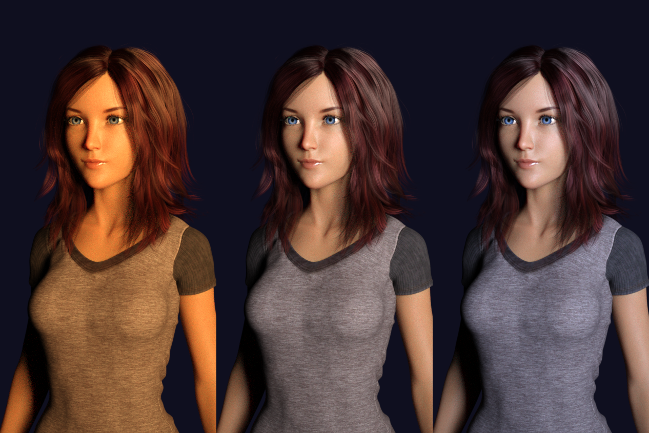 The image above was taken using the Sunny 16 rule: Shutter Speed at 125, F-Stop at 16, ISO at 200. The environment was set to "Dome Only", so our spotlight has no effect on Aiko. But even though it's supposed to be a bright sunny day, it's still too dark for her liking.