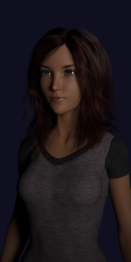 I created a spotlight about 150 units away from Aiko, aimed it at her face, then orbited it around until it's just to the right of the camera.