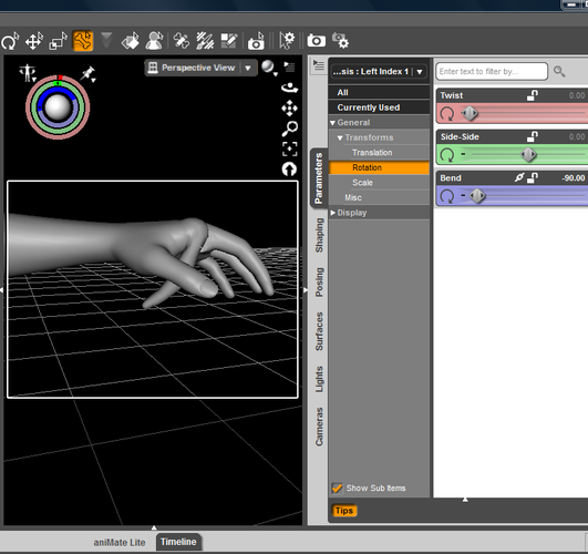 While posing Genesis hands and fingers I noticed that even with Limits On all finger joints (except thumbs) will not bend to the stated values of Limits. For example, if a digit's Limits are +90 and -45, bending a finger backwards (-45) will stop at another number value, say -30, using entered values or the sliders. What I assume is an IK chain-link (within the parameter setting for a joint) has to be set to off or "broken" to reach the stated negative value of Limits.