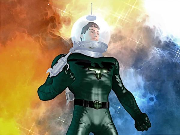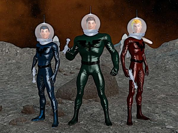 Three quick tests, a retro spaceman, a 60s-style Superboy (gotta cut back on the reflective surfaces), and three retro space cadets.