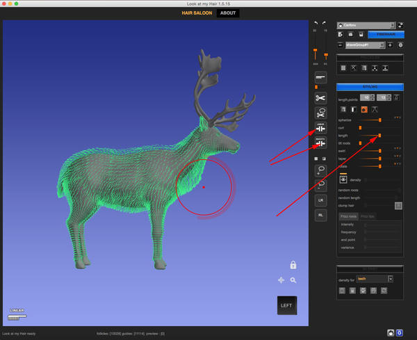 I can't see how to adjust the hair length for this. The preset's hair is too long for a caribou. And, the caribou body is too small. There's no scale slider. Any help is welcome. Thanks.