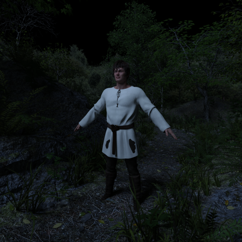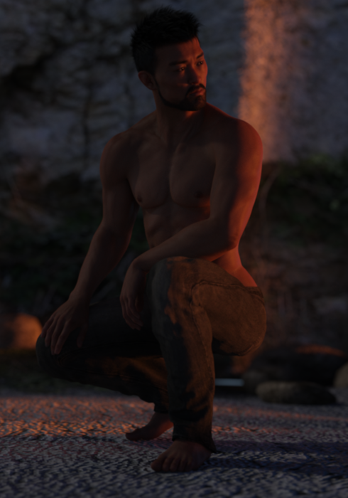 I also supplemented the main character with a rectangular spotlight (100cm by 100cm) as a key light, to emphasize him.