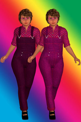This expansion for Oskarsson's On the Farm outfit for Genesis [available at Daz3D] contains 2 morphs, FlareCuffs and LengthenLegs, and 2 textures -- including pink, purple and plaid! -- for the Farm Clothes.