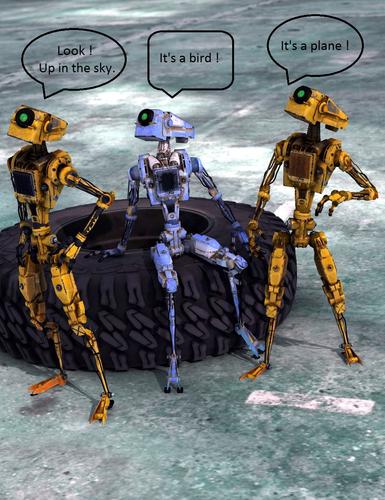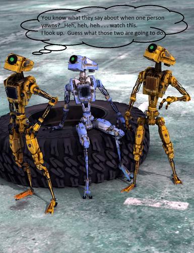 Things got a little interesting around the garage when Unit 4 tried to imitate human mating techniques with the able assistance of a discarded can-opener...