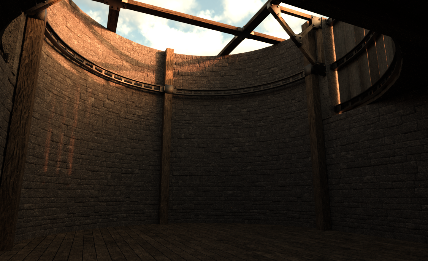 This is a mad scientist's laboratory. The basic building is modelled after an an actual old mill that is near the village I live in. Of course, I've added my own architectural insanity. :) The walls, floors, and fixtures are all highly optimized geometry instead of texture map illusions, so you can shoot from any almost any angle and you'll see the shapes of the stones, or the gaps between the wooden planks, but they'll render lightning fast. There's a roof with a trap door that opens to the sky, so you can let the lightning down for your...um...experiments. All the parts are modular. Hide what you don't need, remove a wall to make room for your camera, you get the idea. The structure is basically keyhole shaped, with the rounded part serving as a sort of operating theater.