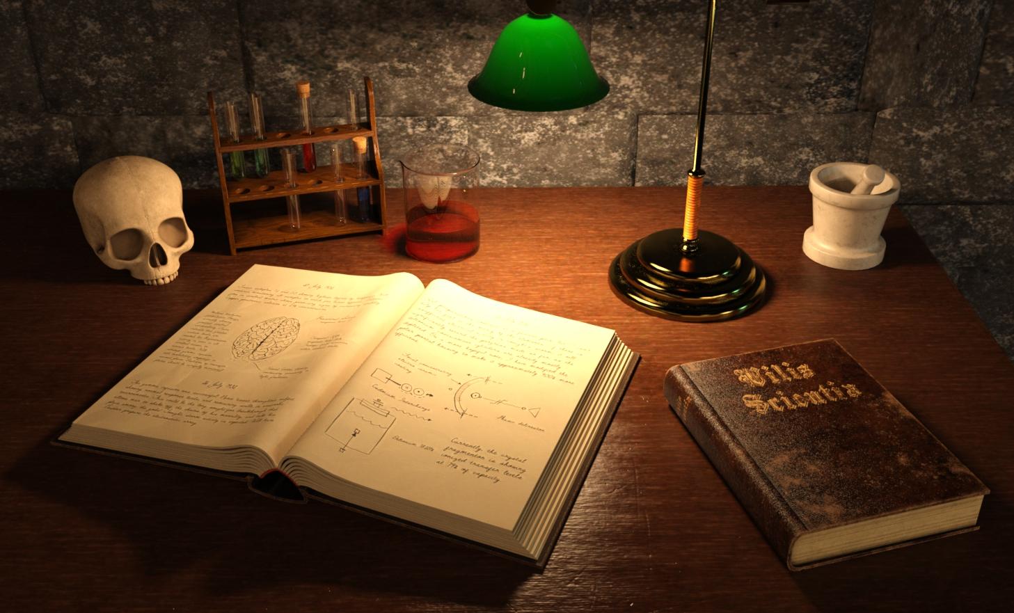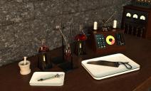 ETA: As promised here's some more shots of various things you'll find in this lab. I'm just sort of piling things on tables at the moment, but the final set will come with a preset to load everything in the lab in one go. For those of you with robust GPUs of course, ha ha. The lamp you see is fully rigged and adustable. Pull the test tubes out of the rack, take their corks off. The pestle and the mortar are fully functioning too, so you can...um...grind things.