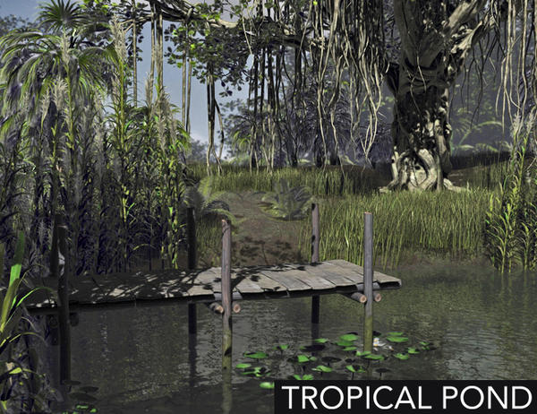 Tropical Pond it's the perfect scenario for your every day renders, and it includes all the trees from the RPC3 collection, so you can further edit the landscape as you wish, or create a new one from scratch.