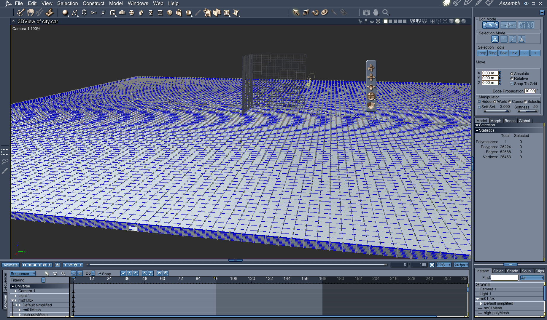 The base model is 26k polys. I suppose I didn't have to make it that big but it is nice to have enough definition for adding some undulation to the ground.