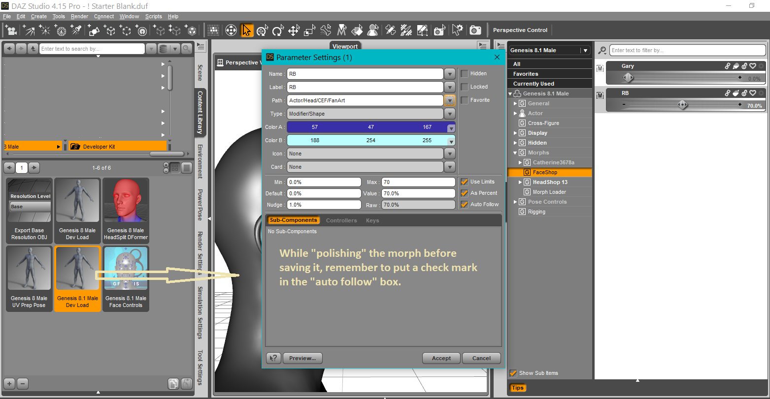 There is a forehead dome morph ... I'm illustrating its use outside of HS14. Yes, I actually sat down one day and turned a whole bunch of those options into individual morphs.