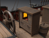 The ship is fantastic, like I already said in the other thread - just one quick question: What is this small structure that looks a bit like a cross between a wardrobe and a range with a sort of pot and a window? It's standing about midway on deck, I am including the part of the promo where it can be best seen. I always thought I know a thing or two about ships, being a bit of a sailor woman myself, but this is probably something historic that I'm just not aware of ...