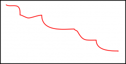 goes up and down in time about the mid point, and right at the end goes to the end value.