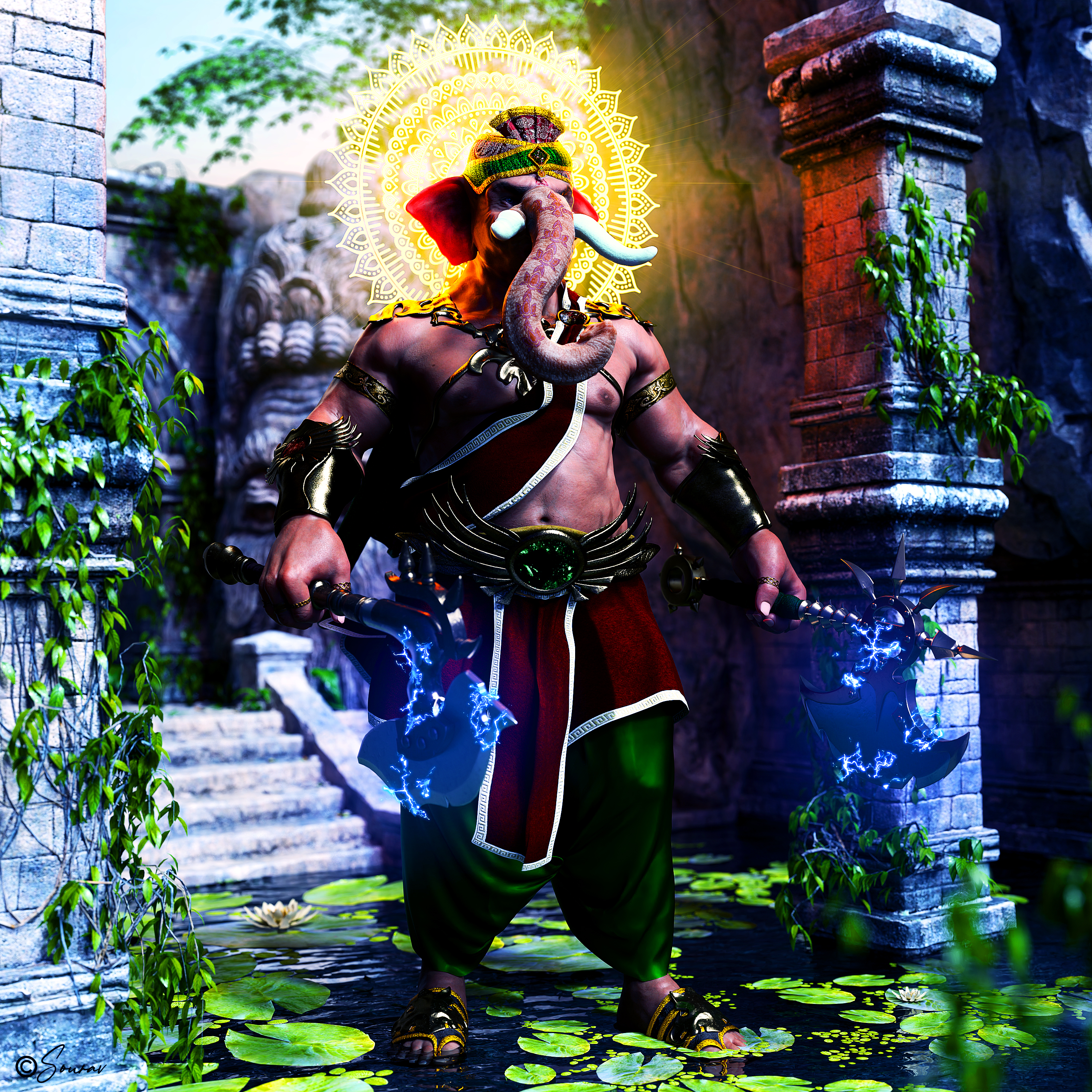 Background: Render of Hindu God Lord Ganesha or Lord Ganapati