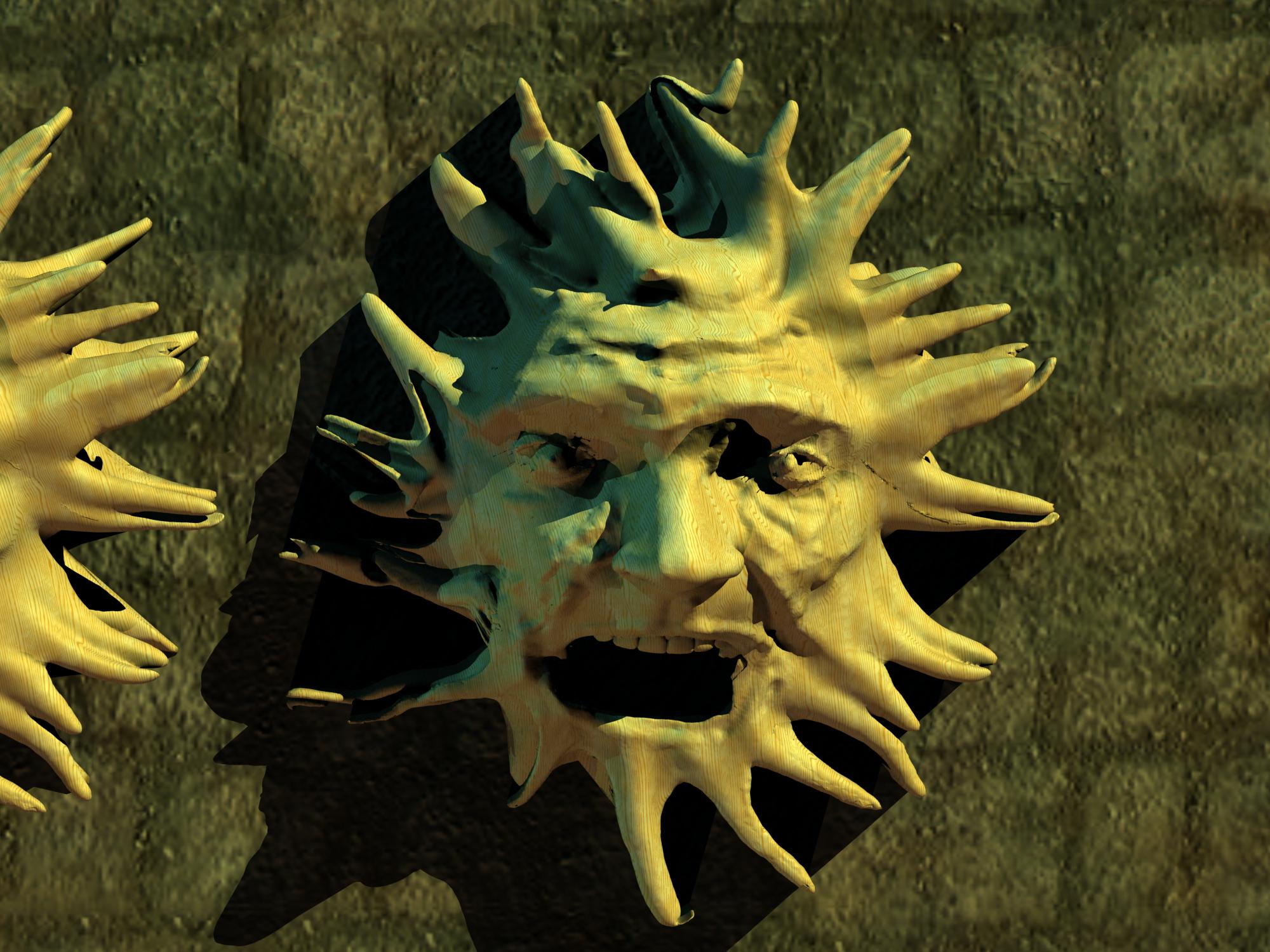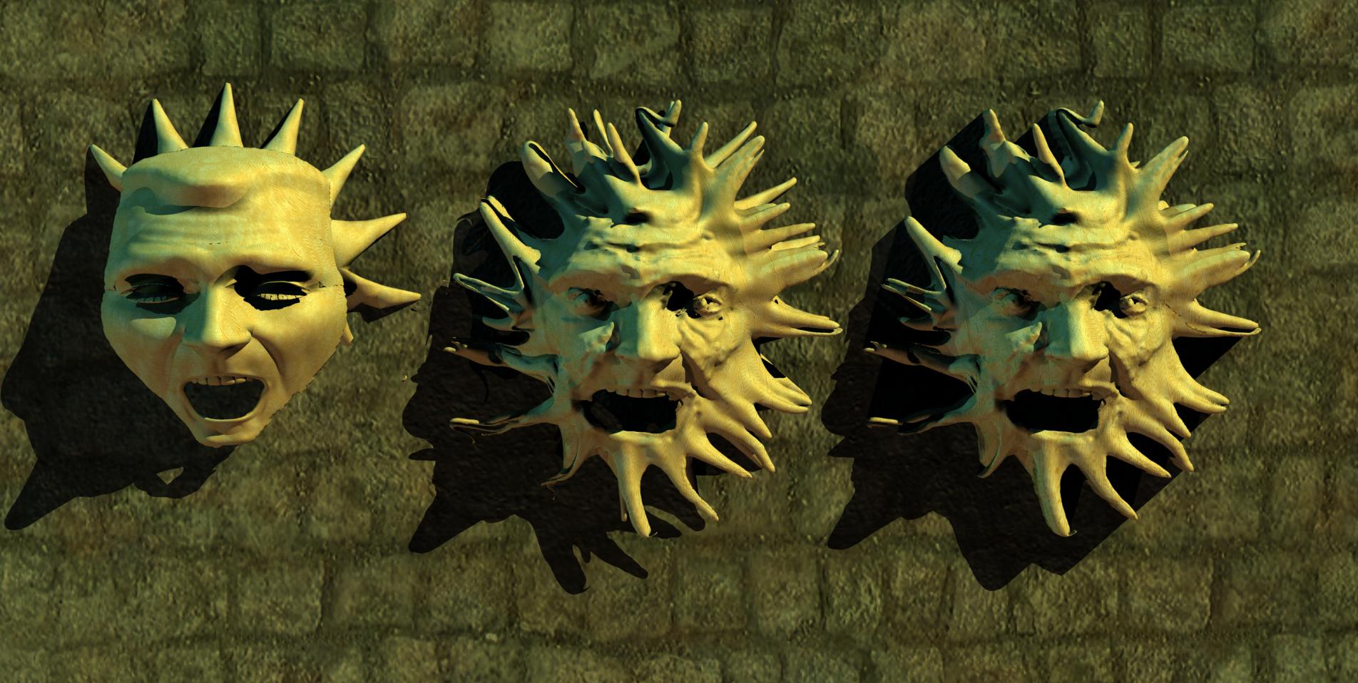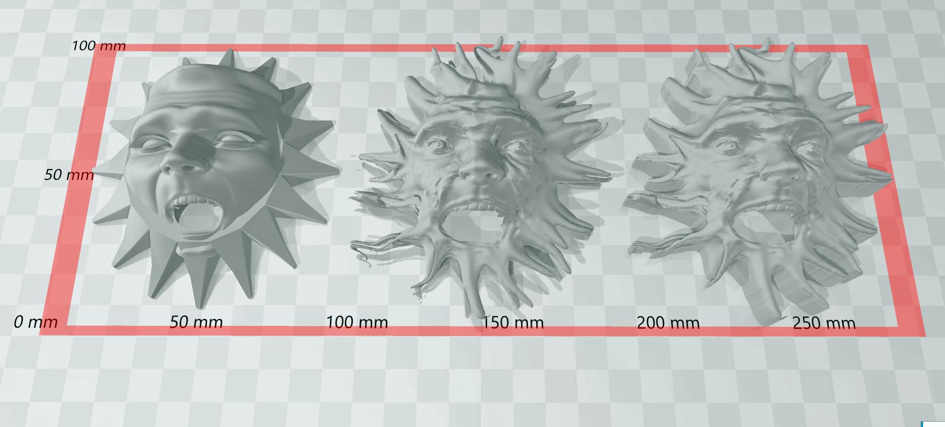 designing sunface thing tio print - on left is what I took out of carrara - the other two are that mesh pushed around with blender and meshmizers sculpting tools