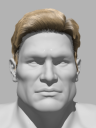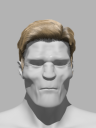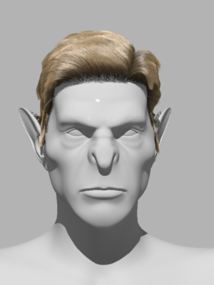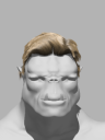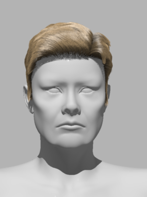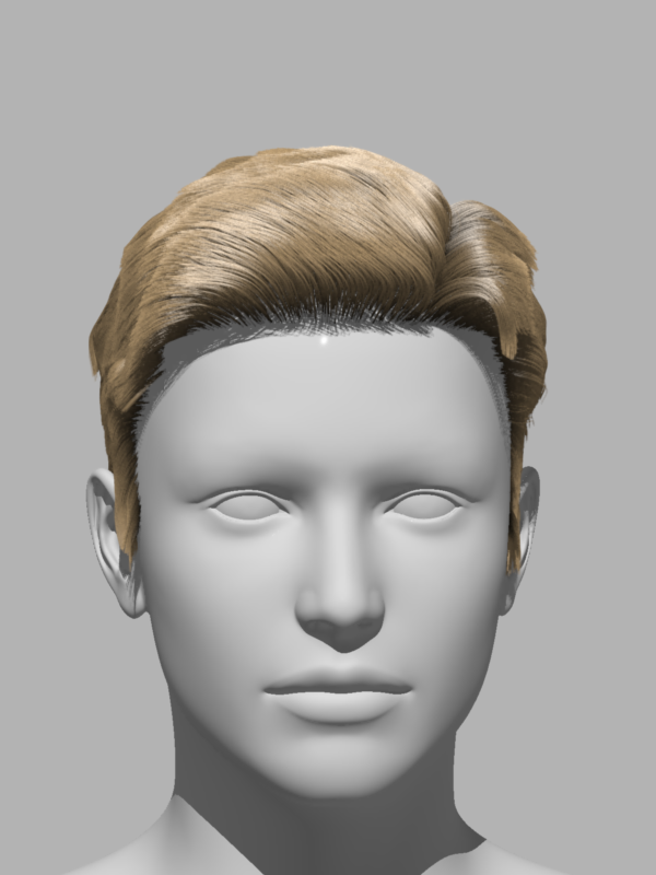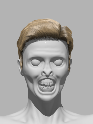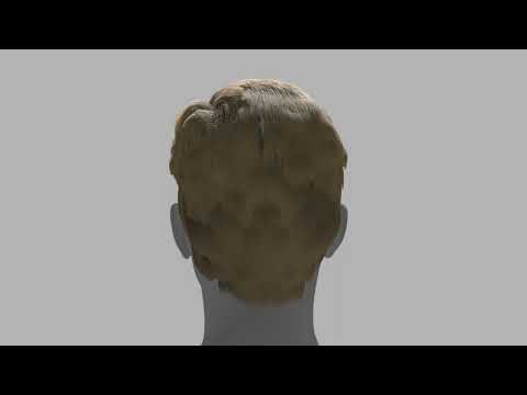 Testing the invisible low poly collision object it's built on, which I'm intending will be useful for hair sims, but of course for a short hairstyle like this no sim is needed. So tried a bunch of shapes to make sure the hair rig still worked with a range of head shapes: