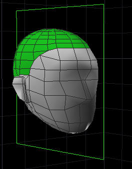 However, by entering "Edit Mode" in the Assembly room, the model selected is now a wire-frame mesh and the interface options switch to exactly the same as if you were in the model room. While in this mode, nothing except the parts of the mesh may be selected. So even though the rest of the scene remains, we can only select polygons, edges, or vertices! In other words, we may select any of those things through other models visible in the scene, as if they weren't there. It's basically the same thing as being in the model room, but instead of having to watch yourself work through that tiny window preview down on the bottom right. Way Fun!!!