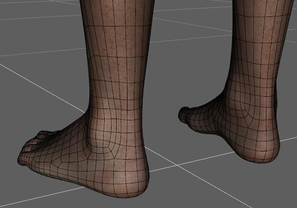 I fix it with the morphing tool, but it’s a lot of work until I got it more or less right. It’s interesting that the mesh looks OK now, but the white Feet outline is still broken.
