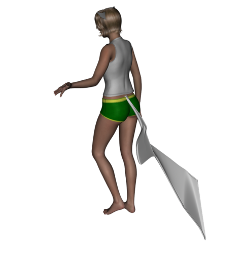 However, even there, I have seen issues with long/thin props like swords. You will probably have to do some manual adjusting if you have her move in very extreme ways (standing with a slight bend like you have pictured will not be an issue, usually).