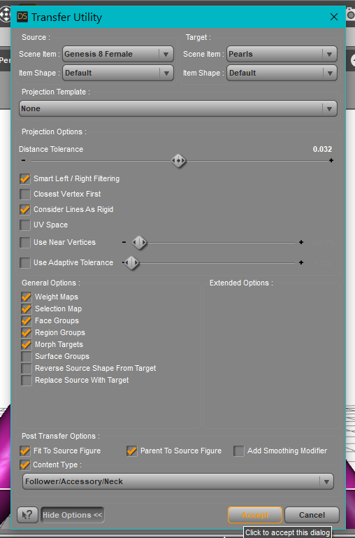Then you run the Transfer Utility. see image for possible suggested settings.