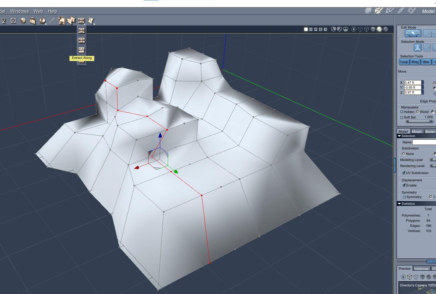 Ah - yes I think I understand the difference, thank you. I've seen that type of edge loop creation in videos for other software, and it always appears to cut so nice and proper. I have made catastrophic 'cuts' countless times without realizing it until many steps down the modeling road using Extract Along or Extract Around on organic or uneven models.