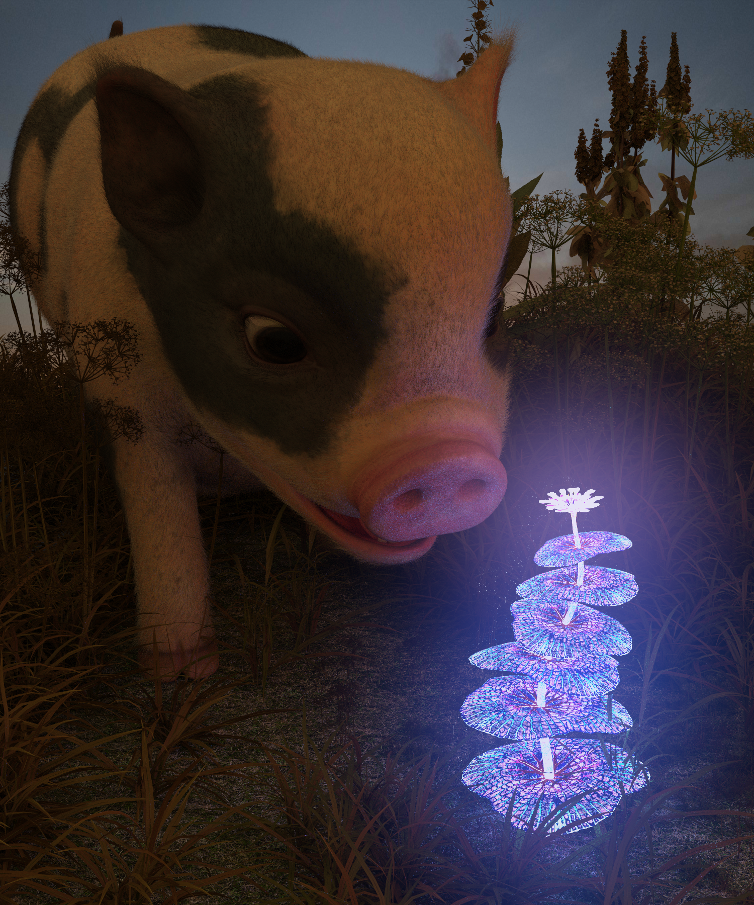 If you could add illuminiation of the flower or whatever it is onto the pigs face and eyes it would be much more dramatic.