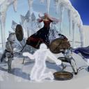 I'ld also do some lighting adjustments. Maybe making the zpped middle character glow some that would illuminate those around it from the center more. Maybe darkening the sky to give more shadows for contrast and putting a light behind the ice crystals could make this much more dramatic.