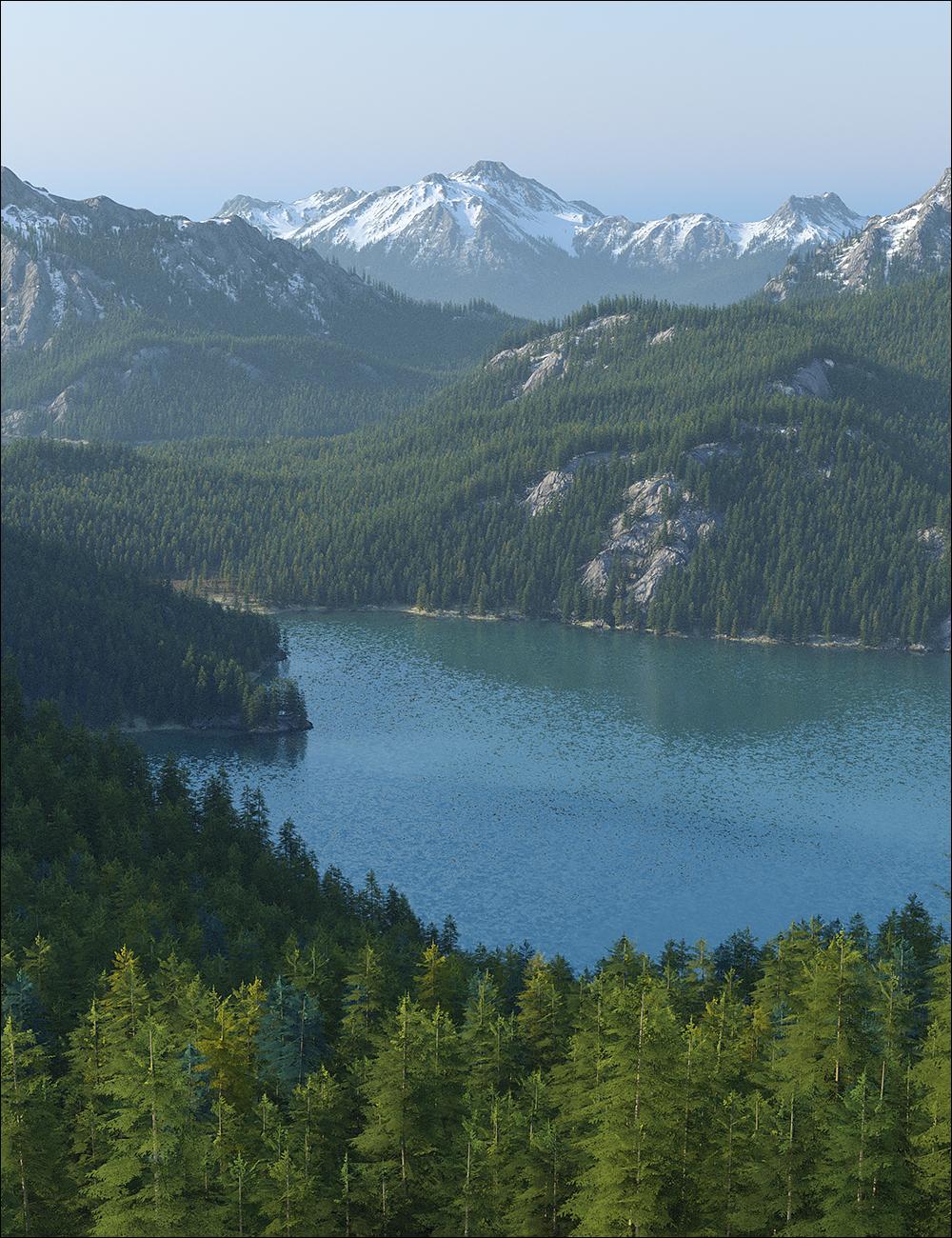 It appears that Daz 4.20 can play havoc with some material files, notoriously OOT hairs, but also UltrasceneryXT mat files. This attached render is an out-of-the-box render with the Vernon biome, and you can see here that while it handles the snow and the trees, the underlying mat file is coming out flat black. (The same thing happens with OOT hairs.) This worked fine in 4.16 - I just did a render with this biome a few days ago.