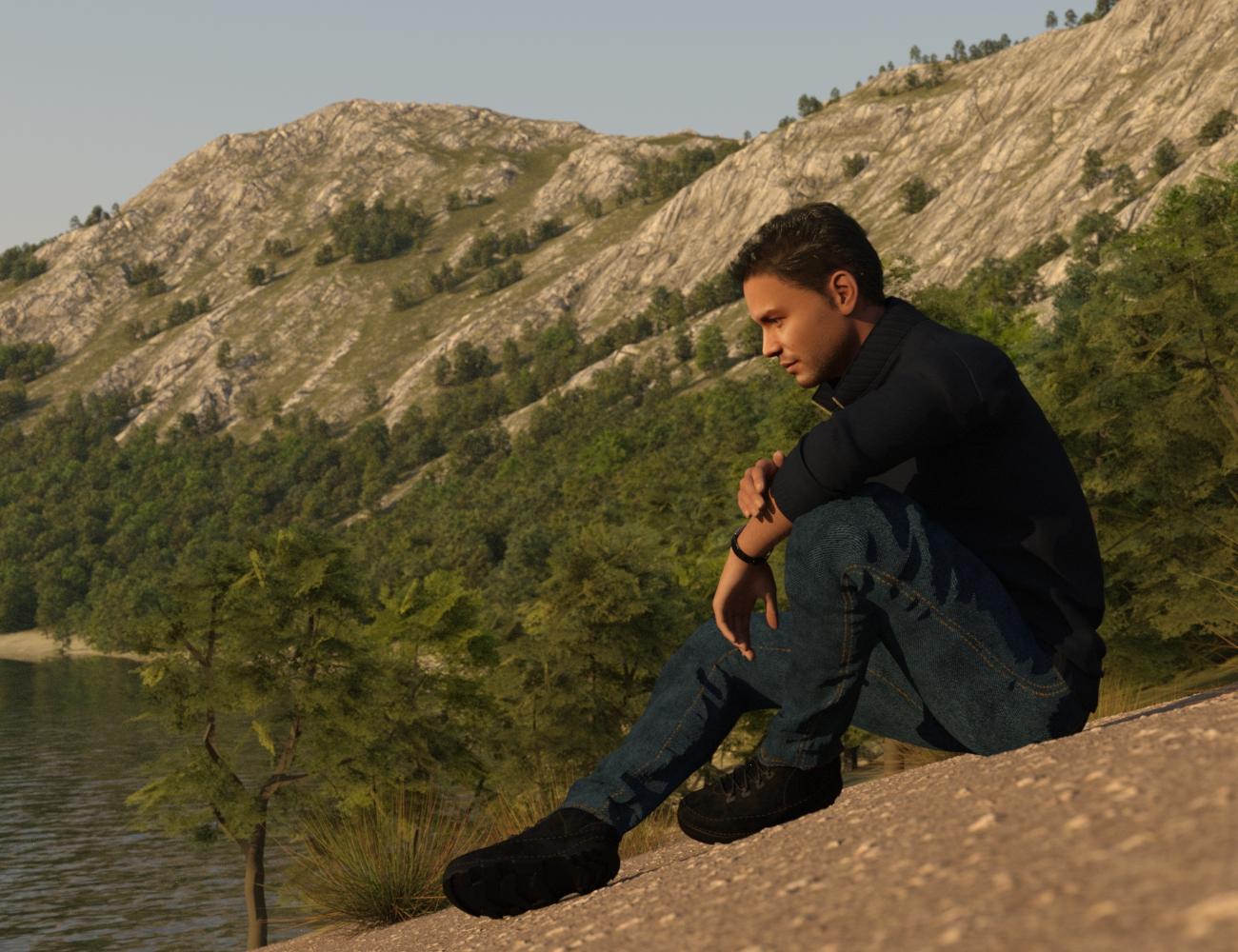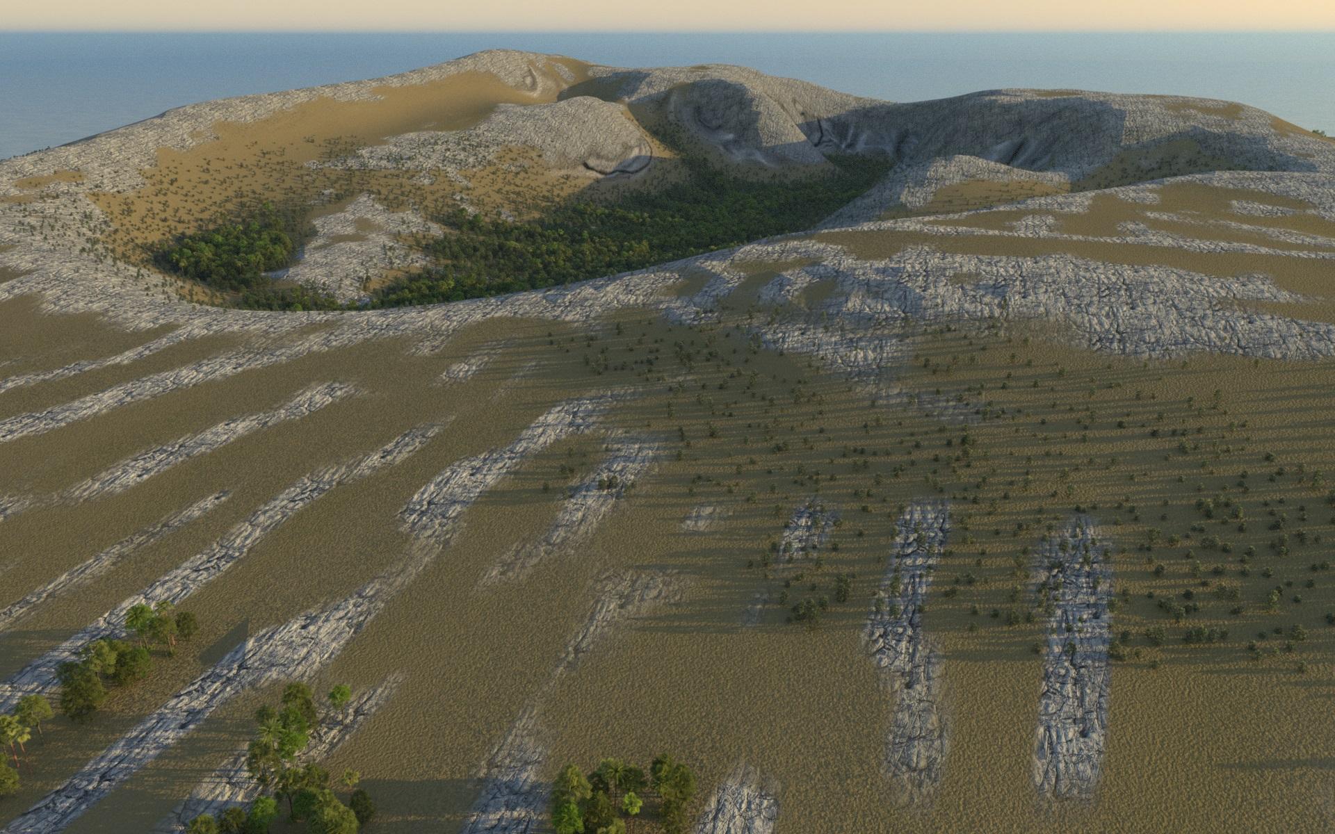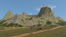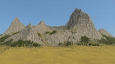Here's a test of the new ground shaders that came out today (Martin J. Frost's Peck of Dirt set that is available as a Daz+ freebie this week). Lacking a better idea, I created a 25x25 ft plane and dforced it to drape over a naturally barren slope on this Lakeland preset, and then applied the shaders to it.