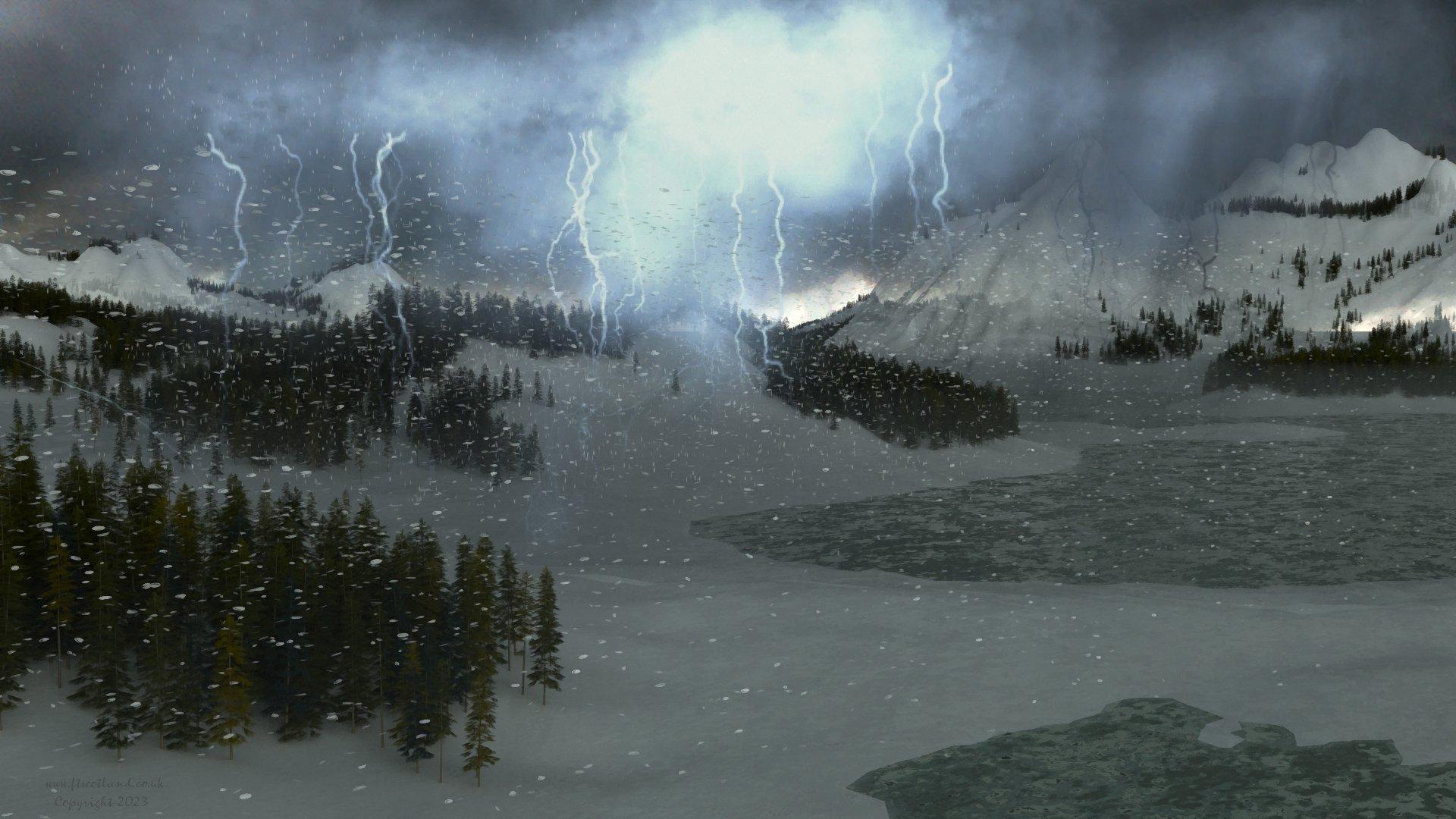 Just a test of UltraSceneryXT terrain with VDB from https://www.daz3d.com/storm-front--lightning-cloud-vdbs-for-daz-studio