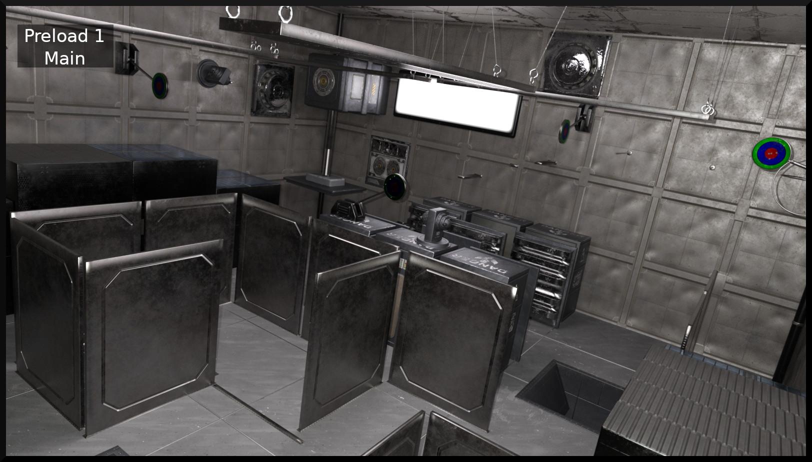 Unfortunately there's no observation room (at least not with this set). I did consider it but it was a lot of work already. The good news is that the walls have plenty of polys (so you can simulate impacts with the included morphs or dformers/mesh grabber) which means that you can use geometry editor to remove some polys and put a window there into another room.