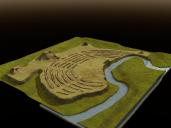 Poverty Point, Louisiana is the name of the world heritge site.  Here is a reference pic and my attempt to use the Carrara terrain editor to approximate the basic layout of the town.  You can't see from the reference because it is a view from above but they leveled the entire area of the town.  More details to be added.