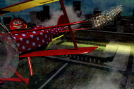 In this render I returned to an old character which first appeared in the Tomato Challenge - the Red Baron. The Baron is crazy about Fokkers! This Fokker is a specially modified triplane (from this product) and includes a kechup bottle fuselage.