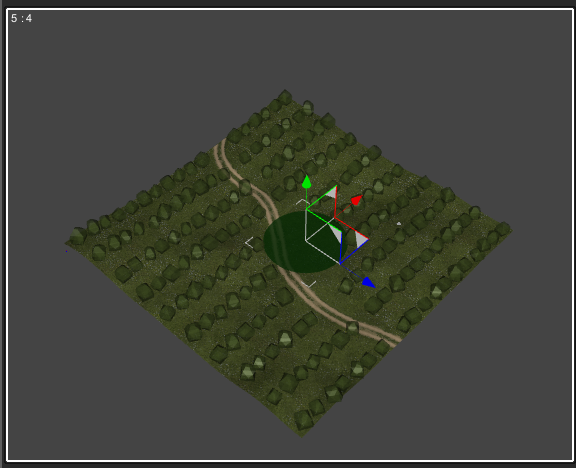 I then added the bridge to the mini-canyon and generated a vegetation mask to create a large circular area around it, clear from trees.