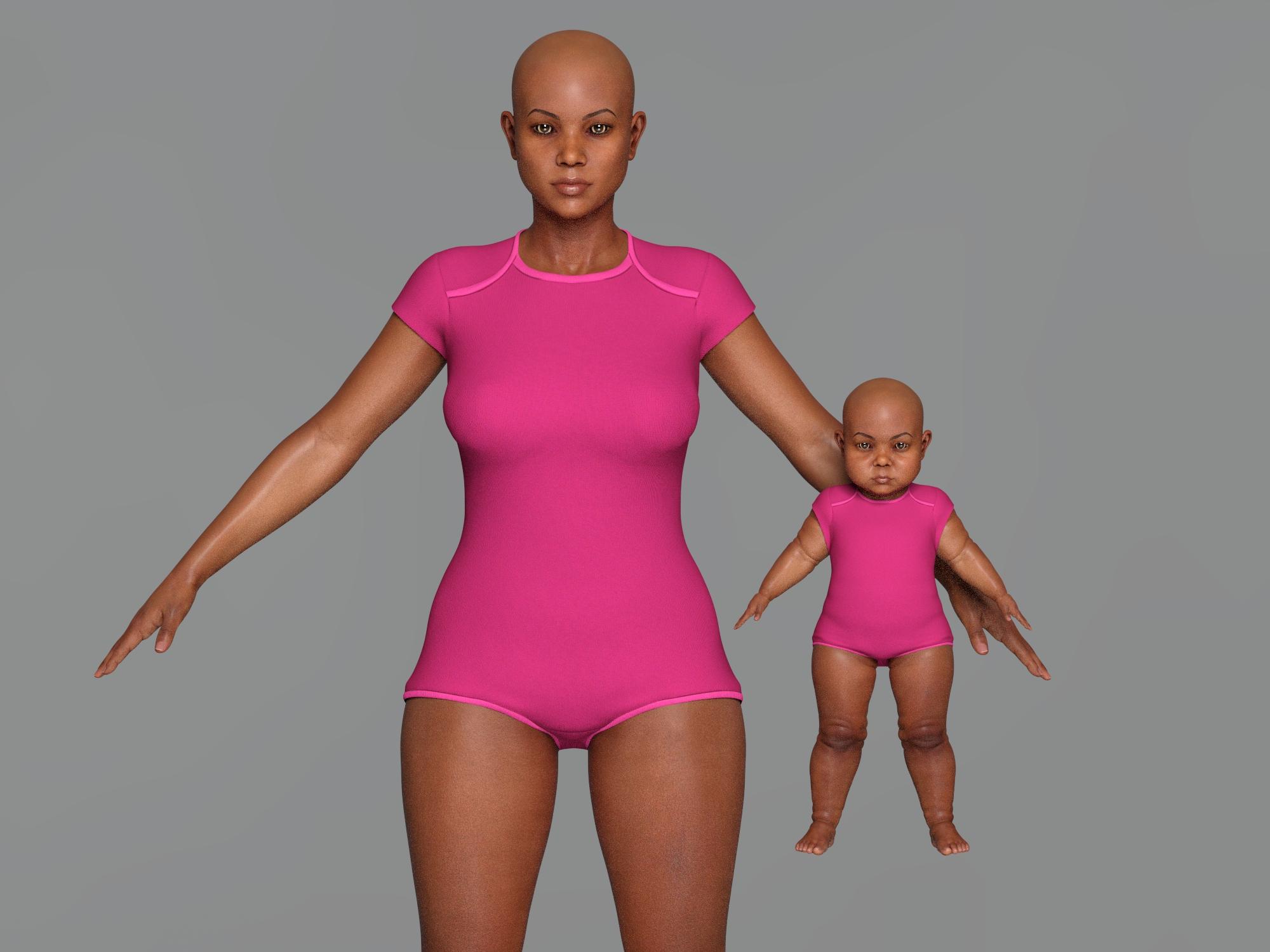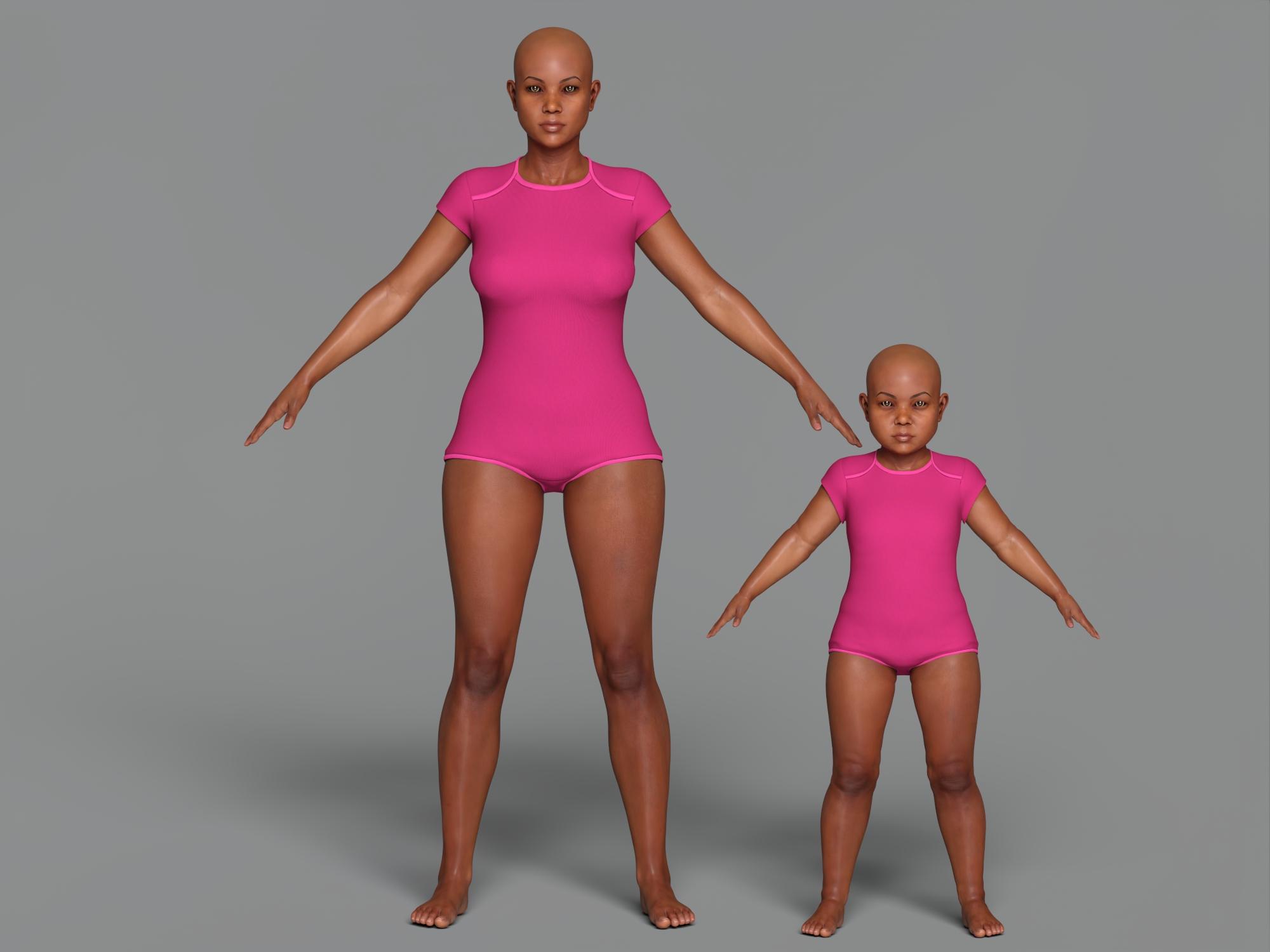 I think Babyfication can also make good children. Here is Latonya 8 and a child created by dialing Babyfication 2 to 50% (Latonay 8 body only 15% again).