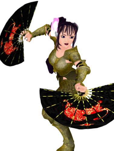 Thanks to it, I made one of my first renders : (As you see, I had yet to understand how things really works ^^. But I was proud like hell to have been able to manage to place the characters like I wanted for the first time ^^.)